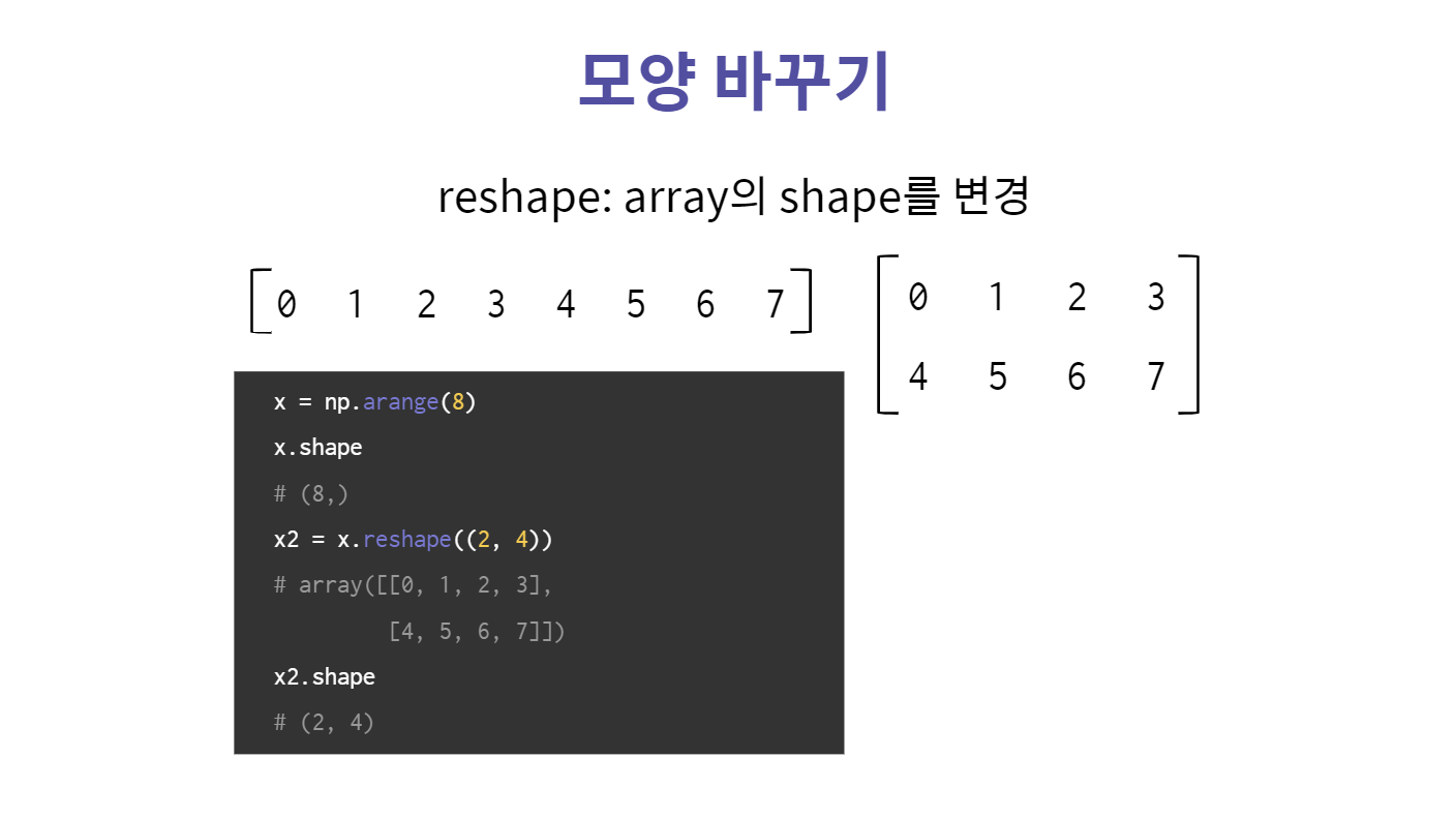 # 배열을 x행 y열 모양으로 차원을 바꿔준다.