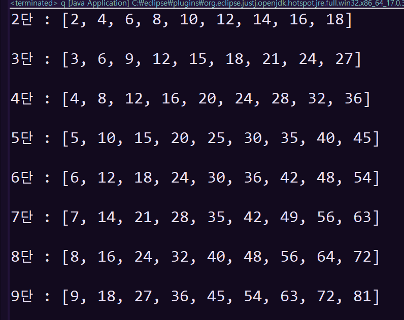 System.out.print((i+2) + "단 : ");