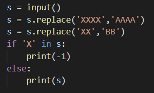 첫째 줄에 사전순으로 가장 앞서는 답을 출력한다. 만약 덮을 수 없으면 -1을 출력한다.