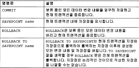 - rollback 문을 사용하여 보류 중인 변경 내용을 모두 버림