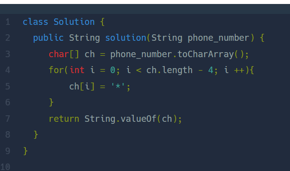 2. 반복문을 돌면서 문자열 길이 -4 까지는 별표로 바꿔준다.