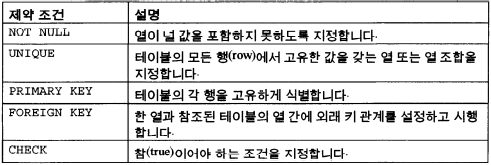 - 제약 조건은 종속된 테이블의 삭제를 방지