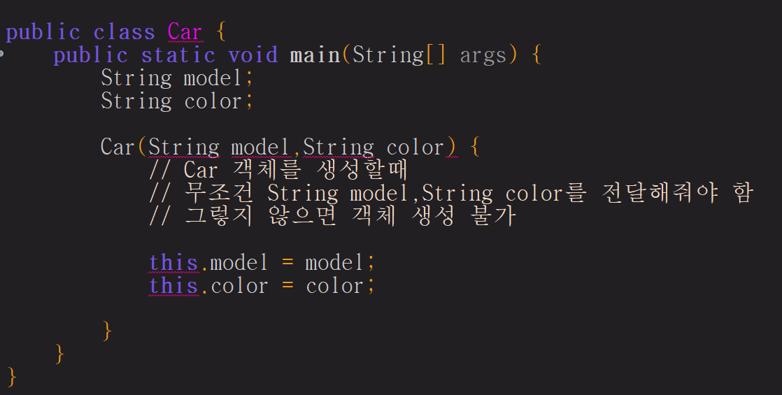 Car car3 = new Car("그랜져","흰색");