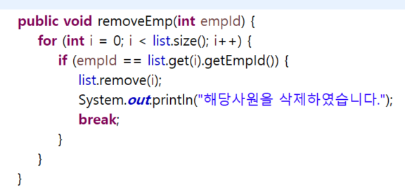 removeEmp 메소드를 만들고 삭제 기능을 넣어준다.