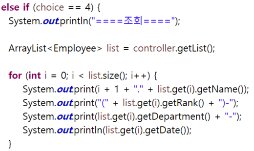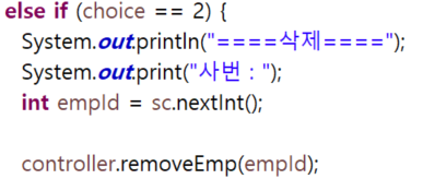 삭제하고 싶은 사번을 입력받고 메소드를통해 controller 클래스에 전달해준다.