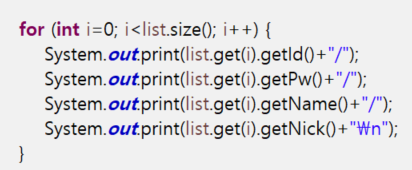 입력받은 MemberVO 타입의 리스트를 반복문을 통해 전체 값 출력