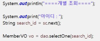 개별조회는 한 개의 MemberVO 객체가 생성되지만,