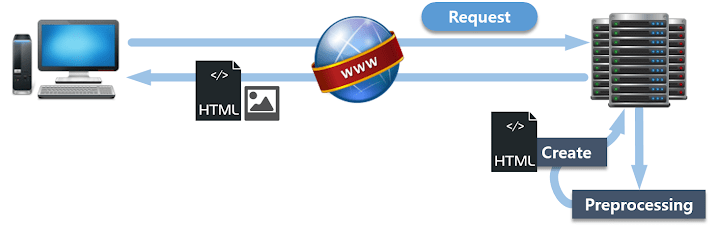 서버는 사용자의 요청을 해석하여 데이터를 가공한 후 생성되는 웹 페이지를 보냄