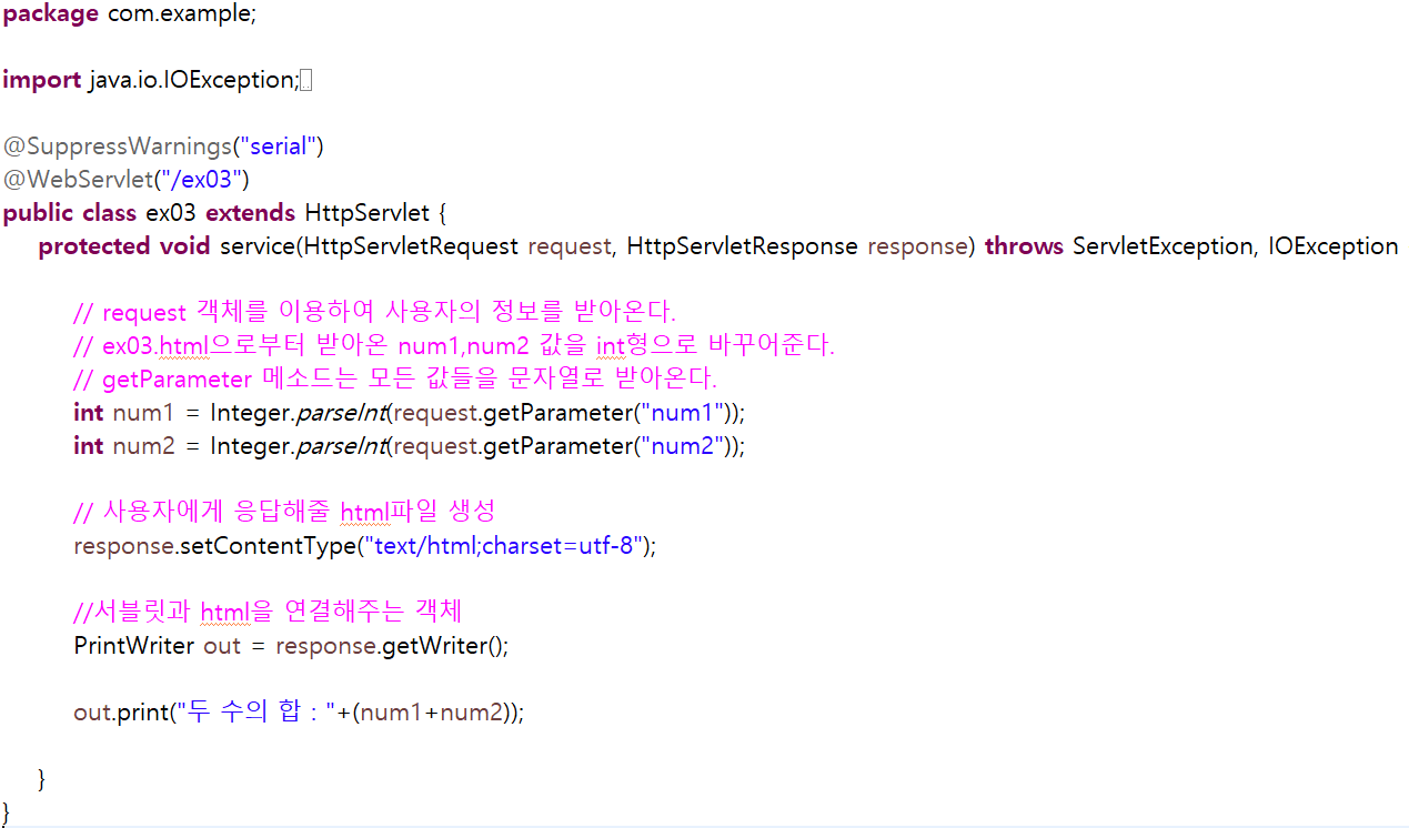 servlet을 이용한 두 수의 합을 구하는 웹페이지를 구현해보겠다.