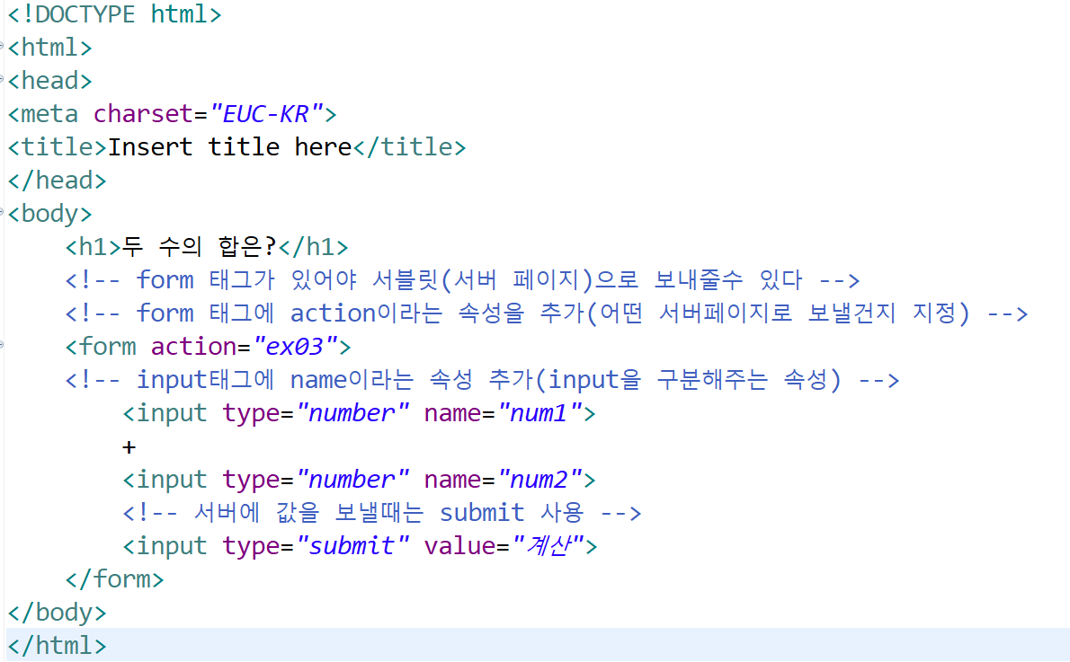 servlet을 이용한 두 수의 합을 구하는 웹페이지를 구현해보겠다.
