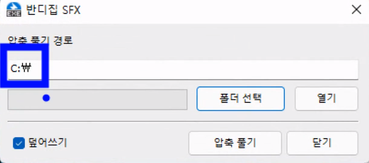 경로를 c드라이버로 설정 후 압축을 풀어준다.
