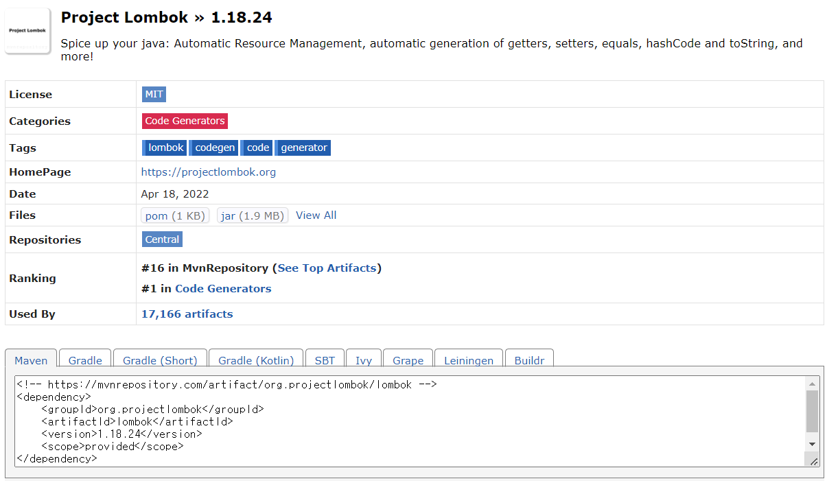 lombok 라이브러리 // vo클래스를 편하게 만들기 위해 lombok 라이브러리를 사용한다.