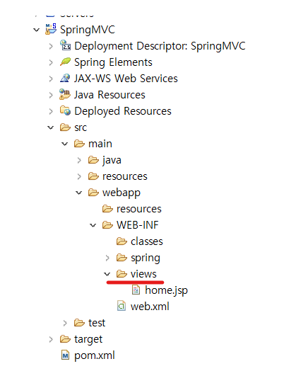 1. 스프링은 모든 jsp를 webapp > WEB-INF > views 폴더안에 생성한다
