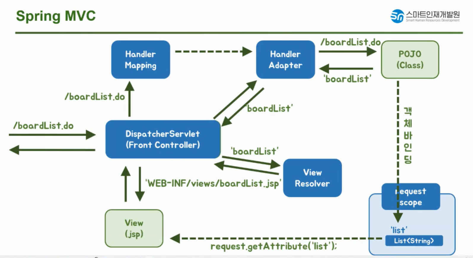 2. 스프링은 jsp에 직접적으로 접근하는것이아니라 컨트롤러를 거쳐서 들어가야 한다