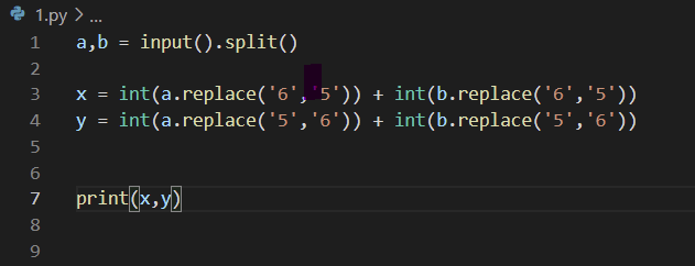 첫째 줄에 두 정수 A와 B가 주어진다. (1 <= A,B <= 1,000,000)
