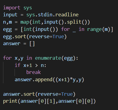 첫째 줄에 정수 N(1 ≤ N ≤ 1,000)과 M(1 ≤ M ≤ 1,000)이 입력된다. 둘째 줄부터 M+1번째 줄까지 i+1번째 줄에는 Pi(1 ≤ Pi ≤ 1,000,000)가 입력된다.