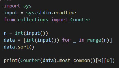 2. 값이 많은수가 여러개이면 작은수를 출력해줘야 돼서 정렬한뒤 most_common함수를 사용해준다.