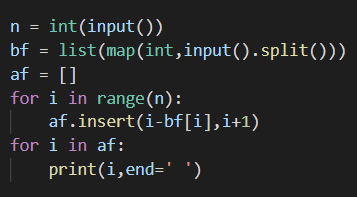 1. af.insert(i-bf[i],i+1) 이부분을 생각하지못했다.