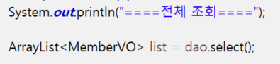 전체조회는 여러 개의 MemberVO 객체가 생성되므로 가변배열 ArrayList를 이용하겟다.